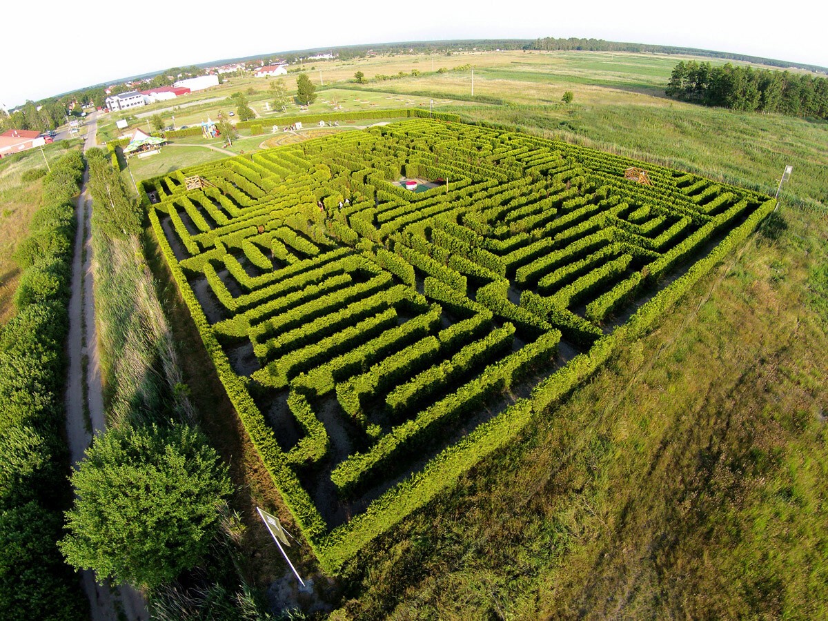 Największy w Polsce naturalny labirynt z żywopłotu (~5000 m²) z platformami widokowymi i „misją” odnalezienia pięciu baz. To świetna, ruchowa rozrywka dla rodzin i grup – z platform można podejrzeć układ alejek i dopingować bliskich. W wakacje obiekt zwykle działa od późnego rana do wieczora; w szczycie dnia bywają kolejki, najlepiej celować w poranek lub popołudnie. Na miejscu działa darmowy dojazd meleksem z centrum (stanowisko 26).